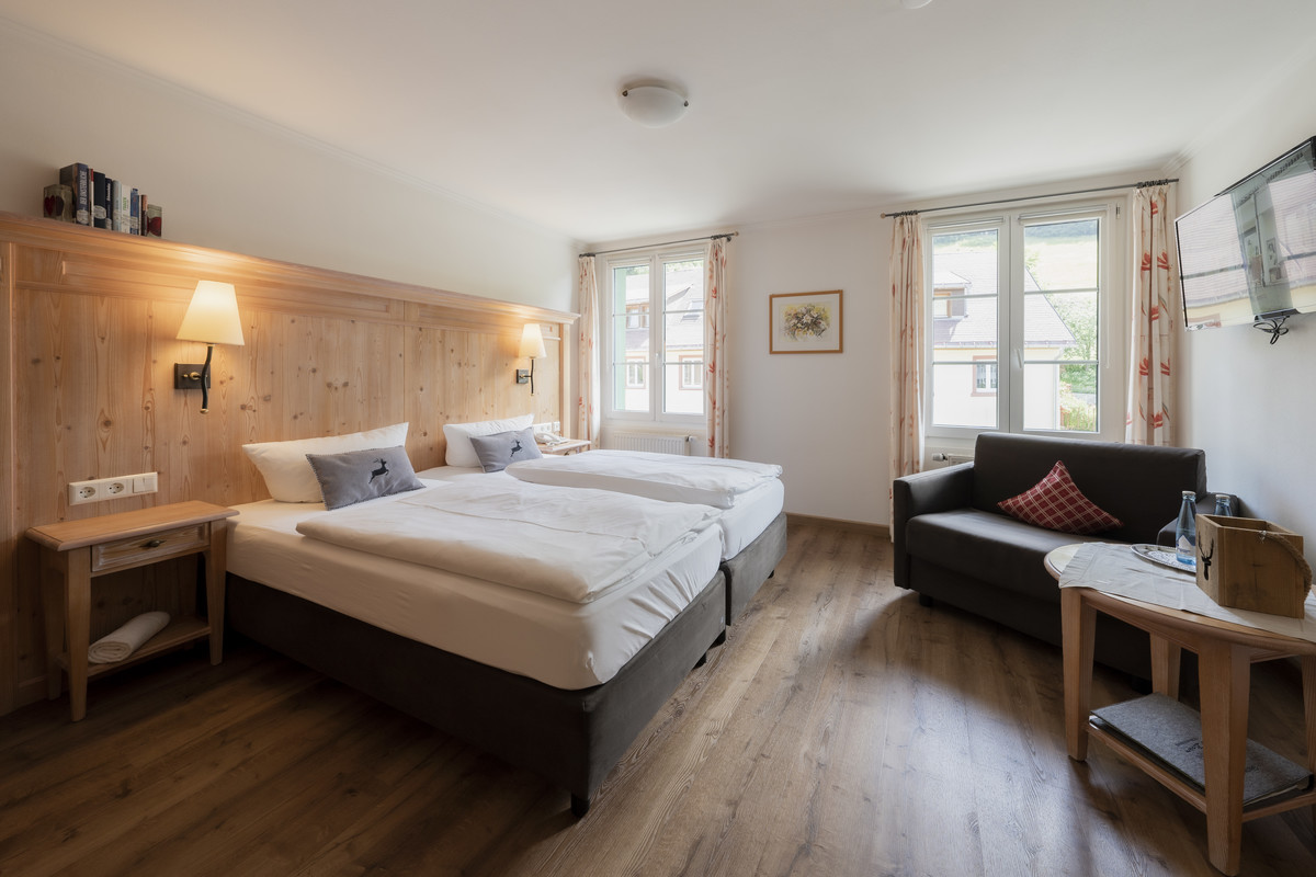 Ein Tagungsraum für bis zu 50 Personen liegt zwei Minuten vom Hotel entfernt in der Dorfmitte von Muggenbrunn und kann ebenfalls angemietet werden.