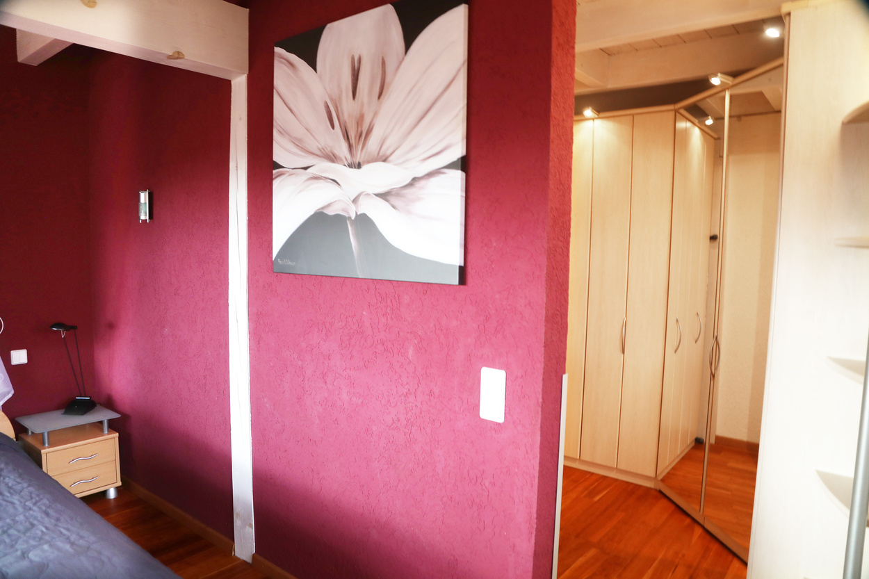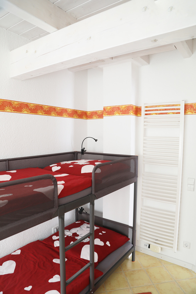 Es sind ein Elternzimmer mit TV, ein Kinderzimmer mit Doppelstockbett und einem Einzelbett, sowie ein Wohnzimmer mit TV vorhanden sowie eine separate voll ausgestattete Küche mit Kaffeemaschine und einem Balkon mit toller Aussicht. Alle Räume sind mit elektrischen Rollladen ausgestattet. Es gibt ein extra Zimmer mit einem Doppelbetten auf dem Dachboden, dass zusätzlich gebucht werden kann.