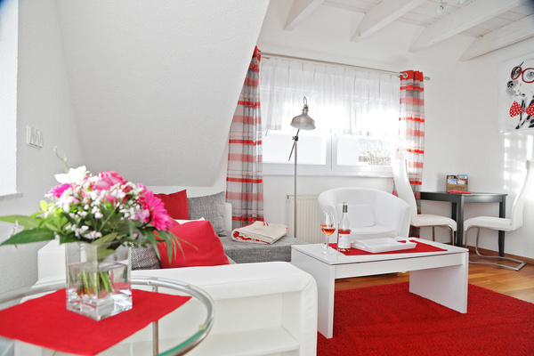 Die Ferienwohnung im 1. Obergeschoss ist modern und hell eingerichtet und bietet genug Raum für Familien mit Kindern. Die Ausstattung ist kinderfreundlich und verfügt über Beistellbett sowie Kinderhochstuhl etc.