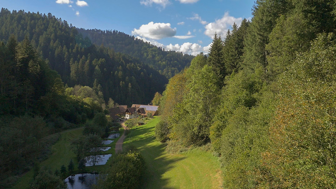 Unser, seit 1618 im Familienbesitz befindlicher, Hof liegt inmitten des Schwarzwaldes, in einem idyllischen Tal, nahe des wunderschönen Flößerstädtchens Schiltach im Kinzigtal. Bei uns wird sehr viel wert auf Tradition gelegt, so führen wir beispielsweise eine über Generationen betriebene Forellenzucht, in den Naturteichen um den Hof und betreiben immer noch die Land- und Forstwirtschaft unseres Hofes.